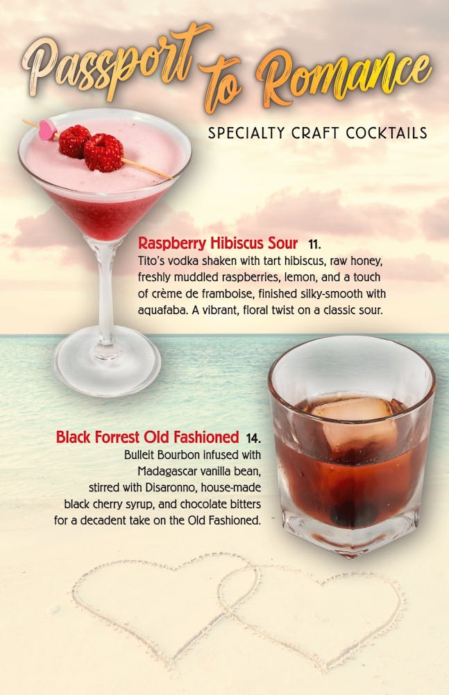 Tito's vodka shaken with tart hibiscus, raw honey, freshly muddled raspberries, lemon, and a touch of crème de framboise, finished silky-smooth with aquafaba. A vibrant, floral twist on a classic sour.